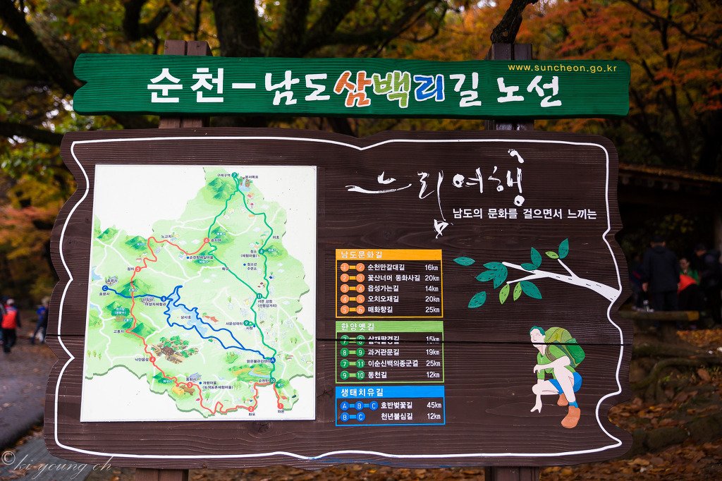 ㅇB코스(남도삼백리길 9코스) : 선암사 주차장-선암사(승선교 위 비석, 역사문화대장정 인증)-생태체험장-큰굴목재-보리밥집-대피소-송광굴목재-(천자암 쌍향수)-송광사-송광사 주차장(약 12km/4시간)