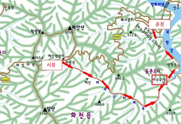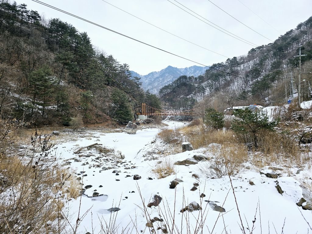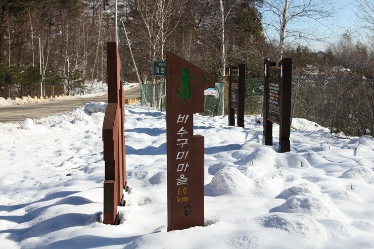 ▶트레킹 및 점심식사(산채비빔밥 단체 매식 가능, 여행사 입금가 12,000원 버스에서 걷어요.) ★ 차량 대기 장소 : 강원특별자치도 화천군 화천읍 동촌리 산323-1 (비수구미 동촌2리 마을입구)