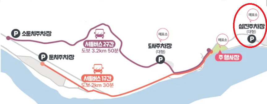 버스 대기 장소 : 전남 광양시 다압면 도사리 80-5 도사주차장(매화마을에서 500m) (도사주차장 만차시 2km 떨어진 임시 대형주차장에 버스대기 : 전남 광양시 다압면 신원리 575-12 둔치주차장) (매화마을에서 둔치주차장까지는 2.5km 일반차량은 출입통제이며 무료셔틀버스만 운행) |